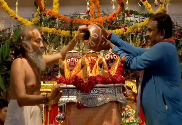 અમદાવાદમાં જળયાત્રા પૂર્વે જગન્નાથ મંદિરમાં ભક્તિમય વાતાવરણ જાેવા મળ્યો હતો. જેમાં મોટી સંખ્યામાં ભક્તો મંદિરે પહોંચ્યા હતા. અમદાવાદમાં યોજાનારી ૧૪૬મી રથયાત્રા પૂર્વે રવિવારે જળયાત્રા યોજાઇ હતી. જળયાત્રા બાદ સાબરમતી નદીના જળથી ભગવાન જગન્નાથનો જળા ભિષેક કરવામાં આવી રહ્યો છે. તેમજ તેની બાદ ભગવાનના ગજવેશ આજે દર્શન થશે. જેની બાદ આજે ભગવાન મોસાળ જશે. રથયાત્રા પૂર્વે યોજાતી જળયાત્રાનું અનોખુ મહત્વ હોય છે. આજે યોજાનારી જળયાત્રામાં મુખ્ય અતિથિ તરીકે શિવાનંદ આશ્રમના સ્વામી પરમાત્માનંદ સરસ્વતી મહારાજ હાજર રહ્યા હતા. રથયાત્રાનો પ્રથમ પડાવ જળયાત્રા માનવામાં આવે છે. એટલા માટે મંદિર પરિસરમાં રથયાત્રા જેવી જ તૈયારીઓ જળયાત્રામાં પણ થતી હોય છે. ભગવાન જે બળદગાડામાં તૈયાર થઇને જતા હોય છે તેને તૈયાર કરવામાં આવ્યા છે. ૧૦૮ જેટલા કળશ લઇને સાબરમતી નદી સોમનાથ ભૂદરના આરેથી ૧૦૮ કળશમાં સાબરમતી નદીનું જળ ભરવામાં આવ્યું હતું ત્યારબાદ આ જળની પૂજા કરવામાં આવી હતી.