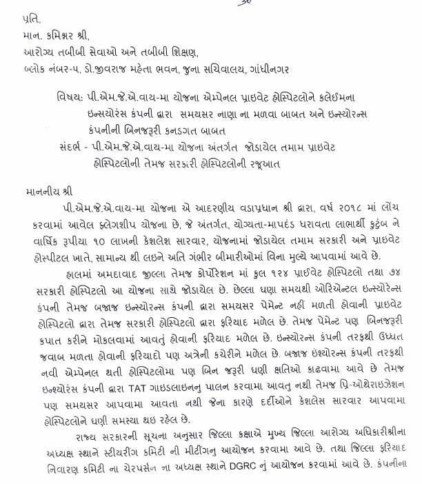 અમદાવાદ જિલ્લા પંચાયતના કલેક્ટરે આરોગ્ય તબીબી સેવાઓ અને તબીબી શિક્ષણ વિભાગના કમિશ્નરને પત્ર લખ્યો