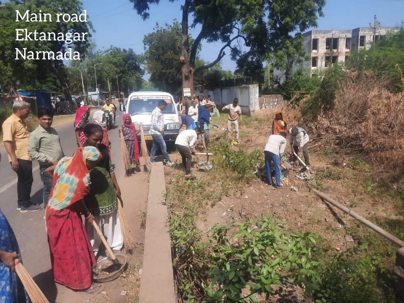 પર્યટન સ્થળ સ્ટેચ્યુ ઓફ યુનિટી એકતાનગર ખાતે સ્થાનિક ગ્રામજનો, સફાઈકર્મીઓ તમામ મહત્પૂર્ણ જગ્યાઓ પર સ્વચ્છતા સર્વોપરીના મંત્ર સાથે સ્વચ્છતા ડ્રાઈવનું આયોજન કરીને તેમજ ગ્રામજનોને સ્વચ્છતા પ્રત્યે જાગૃત કરવા માટે જિલ્લા-તાલુકાના જનપ્રતિનિધશ્રીઓએ પોતે મુખ્ય બજાર, જાહેર માર્ગ, પર સાવરણીથી સફાઈ ઝુંબેશમાં જોડાયા હતા.