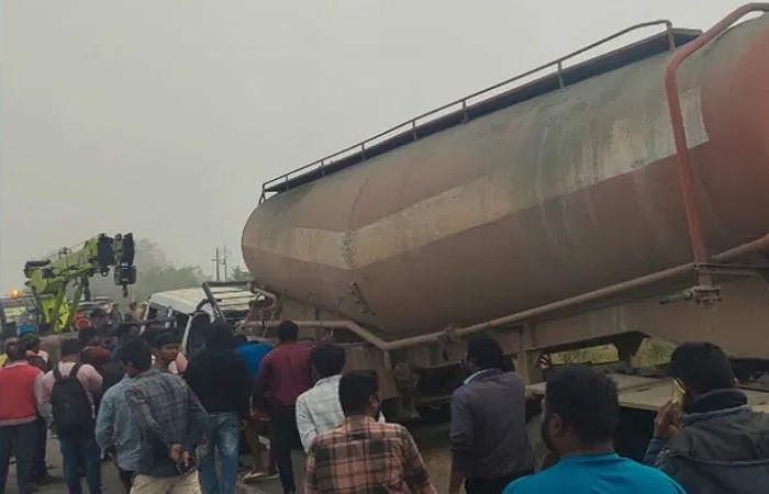 કર્ણાટકના ચિક્કાબલ્લાપુરમાં એક ભયાનક માર્ગ અકસ્માત થયો હતો. આ અકસ્માતમાં 12 લોકોના મોત થયા છે. આ અકસ્માત ગુરુવારે સવારે 7.15 વાગ્યે NH 44 પર ચિત્રાવતી ટ્રાફિક પોલીસ સ્ટેશનની સામે થયો હતો. આ ઘટનામાં 12ના મોત થયા હતા અને એક ગંભીર રીતે ઘાયલ થયો હતો. મૃતકોમાં 8 પુરુષો અને 4 મહિલાઓનો સમાવેશ થાય છે. NH 44 પર સામેથી આવી રહેલી ટાટા સુમોએ ઉભેલા ટેન્કરને ટક્કર મારી હતી.NH 44 પર સામેથી આવી રહેલી ટાટા સુમોએ ઉભેલા ટેન્કરને ટક્કર મારી હતી. ટેન્કર અને સુમો વચ્ચેની અથડામણ બાદ ઘાયલોને હોસ્પિટલમાં દાખલ કરવામાં આવ્યા હતા, જ્યાં તેઓનું મોત થયું હતું.સૂત્રોના જણાવ્યા અનુસાર ગાઢ ધુમ્મસને કારણે કાર ચાલક રોડ કિનારે પાર્ક કરેલા ટેન્કરને જોઈ શક્યો ન હતો અને તેની સાથે અથડાઈ હતી.