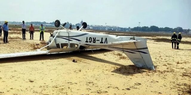 કર્ણાટકમાં ટ્રેનિંગ દરમિયાન એક ટ્રેનિંગ એરક્રાફ્ટનું ઈમરજન્સી લેન્ડિંગ કરવું પડ્યું હતું. ઈમરજન્સી લેન્ડિંગને કારણે વિમાનમાં સવાર બંને પાઈલટને ઈજા થઈ છે અને તેમને સારવાર માટે એરફોર્સની હોસ્પિટલમાં દાખલ કરવામાં આવ્યા છે. સોમવારના એક દિવસ પહેલા પણ ભારતીય વાયુસેનાના અપાચે હેલિકોપ્ટરને મધ્યપ્રદેશના ભીંડ જિલ્લામાં ઈમરજન્સી લેન્ડિંગ દ્વારા લેન્ડિંગ કરાવવામાં આવ્યું હતું. વાયુસેનાએ જણાવ્યું કે ઇમરજન્સી લેન્ડિંગના થોડા કલાકો બાદ વિમાનને રિપેર કરીને મોકલવામાં આવ્યું હતું. હેલિકોપ્ટરમાં બે કર્મચારીઓ સવાર હતા અને કોઈ જાનહાનિ થઈ ન હતી. જાે કે આજની ઘટના કર્ણાટકની છે, જ્યાં રેડબર્ડ એવિએશનના બે સીટર ટ્રેનિંગ એરક્રાફ્ટનું બેલાગવીના સાંબ્રા એરપોર્ટ નજીક ઈમરજન્સી લેન્ડિંગ કરવું પડ્યું હતું. ફ્લાઈટ દરમિયાન ટેક્નિકલ ખામી સર્જાતા ઈમરજન્સી લેન્ડિંગ કરવું પડ્યું હતું. જાે કે આ દરમિયાન બંને પાઈલટને સામાન્ય ઈજા થઈ છે. બંને પાયલોટને એરફોર્સ હોસ્પિટલમાં દાખલ કરવામાં આવ્યા છે. સૂત્રોના જણાવ્યા અનુસાર, પાયલટ અને એક તાલીમાર્થી પાયલટને લઈને આ તાલીમી વિમાને આજે સવારે ૯.૩૦ વાગ્યે બેલાગવીના સાંબ્રા એરપોર્ટ પરથી ઉડાન ભરી હતી, જાેકે, ઉડાન દરમિયાન વિમાનમાં ટેકનિકલ ખામી હોવાની માહિતી મળી હતી. એરક્રાફ્ટમાં ટેક્નિકલ ખામીના કારણે એરક્રાફ્ટનું ઈમરજન્સી લેન્ડિંગ કરવું પડ્યું હતું અને તેને બેલાગવી જિલ્લાના હોનિહાલા ગામમાં એક ખેતરમાં લેન્ડ કરવામાં આવ્યું હતું. તે બેલાગવીમાં ફ્લાઇટ ટ્રેનિંગ સેન્ટરના ટ્રેનર્સ માટેનું પ્રશિક્ષણ વિમાન હતું. દુર્ઘટનાની માહિતી મળતા જ વાયુસેનાના જવાનો, ટ્રેનિંગ સ્કૂલના અધિકારીઓ અને ફાયર ટેન્ડર ઘટનાસ્થળે પહોંચી ગયા હતા. જાે કે આ અકસ્માતમાં કોઈ જાનહાનિના સમાચાર નથી. જે મેદાનમાં ઉતરાણ થયું હતું ત્યાં મોટી સંખ્યામાં લોકો નથી. આ પહેલા ગયા અઠવાડિયે શુક્રવારે વેનકુવર જઈ રહેલી એર ઈન્ડિયાની ફ્લાઈટમાં ટેક્નિકલ ખામી સર્જાતા ટેકઓફ બાદ તરત જ દિલ્હી પરત ફરવું પડ્યું હતું. દિલ્હી એરપોર્ટ પર બોઇંગ ૭૭૭ એરક્રાફ્ટનું સુરક્ષિત લેન્ડિંગ કરવામાં આવ્યું હતું.
