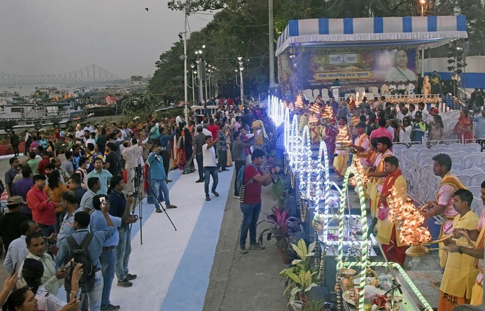 પશ્ચિમ બંગાળના મુખ્યમંત્રી મમતા બેનર્જીએ વારાણસી જેવા રાજ્યભરના વિવિધ ગંગા ઘાટ પર ગંગા આરતીની શરૂઆત કરી છે. આ વર્ષે ૨ માર્ચથી, ગંગા આરતી જાેવા માટે મોટી સંખ્યામાં પ્રવાસીઓ કોલકાતામાં (ર્દ્ભઙ્માટ્ઠંટ્ઠ) ઉમટી રહ્યા છે. મુલાકાતીઓને મફતમાં ગંગા આરતી જાેવાની તક મળી રહી છે અને આ વખતે કોલકાતા મ્યુનિસિપલ કોર્પોરેશને ગંગા આરતી જાેવા આવનારાઓ માટે ખીચડીના પ્રસાદની વ્યવસ્થા કરી છે. એક વરિષ્ઠ સરકારી અધિકારીના જણાવ્યા અનુસાર, શનિવારે આરતી પછી અઠવાડિયામાં એકવાર ભોગ ચઢાવવાની વ્યવસ્થા કરવામાં આવી છે. આરતીની સાથે કોલકાતા નગરપાલિકા પણ આ કાર્યક્રમનું આયોજન કરી રહી છે. આરતી દર્શન બાદ દર્શનાર્થીઓ ખીચડીનો આનંદ માણી રહ્યા છે. ગંગા આરતી જાેયા પછી મુલાકાતીઓને આ ખાસ ખીચડી ભોગ આપવામાં આવે છે. મ્યુનિસિપલ સૂત્રોના જણાવ્યા અનુસાર આ ગંગા આરતી માટે દરરોજ સાંજે લગભગ એક હજાર ભક્તો બડે કદમતલા ઘાટ પર આવે છે. સપ્તાહના છેલ્લા દિવસે શનિવારે ભીડ થોડી વધુ રહે છે. તેથી જ આ દિવસે ભોગની વ્યવસ્થા કરવામાં આવી છે. ખીચડીનો ભોગ લગભગ ૧૦૦ કિલો ચોખા, ૫૦ કિલો કઠોળ, ૩ થી ૫ કિલો ઘી, કાજુ, કિસમિસ અને વિવિધ શાકભાજી અને મસાલામાંથી તૈયાર કરવામાં આવે છે. ખીચડીનો પ્રસાદ શાલપત્રના વાટકામાં મુલાકાતીઓમાં વહેંચવામાં આવે છે. હાલમાં શનિવાર સાંજના પ્રસાદ માટે આ વ્યવસ્થા કરવામાં આવી છે, પરંતુ નજીકના ભવિષ્યમાં આ દિવસ લંબાવવાની યોજના છે. આ ભોગ શનિવારે દેવી ગંગાના મંદિરમાં આરતીની સાથે ચઢાવવામાં આવે છે. ત્યારબાદ આરતીના અંતે પ્રસાદનું વિતરણ કરવામાં આવે છે. મ્યુનિસિપલ કોર્પોરેશને એક સ્વૈચ્છિક સંસ્થાને ભોગનું આયોજન કરવાની જવાબદારી સોંપી છે. કોલકાતામાં જાેવાલાયક સ્થળોની યાદીમાં એક નવો ઉમેરો ગંગા ઘાટ આરતી છે. રાજ્ય સરકાર આ જર્જરિત કદમતલા ઘાટને આંતરરાષ્ટ્રીય સ્તરનું પ્રવાસન કેન્દ્ર બનાવવા માંગે છે. ગંગાનું સૌંદર્ય સુખદ વાતાવરણ બનાવે છે. દરરોજ સાંજે ગંગા પૂજા સાથે ગંગા આરતીના દર્શન પણ કરવામાં આવે છે. મમતા બેનર્જી વારાણસી ગંગા ઘાટ પર આરતીથી પ્રભાવિત થયા હતા. મુખ્યમંત્રીએ કોલકાતા ઘાટ પર આવી આરતી કરવાની ઈચ્છા વ્યક્ત કરી હતી અને કોલકાતા મ્યુનિસિપલ કોર્પોરેશનને જવાબદારી સોંપી હતી. આ આરતીની શરૂઆત પહેલા ઘાટ પર મા ગંગાનું મંદિર બનાવવામાં આવ્યું છે. અહીં મા ગંગાની મૂર્તિ સ્થાપિત કરવામાં આવી છે.