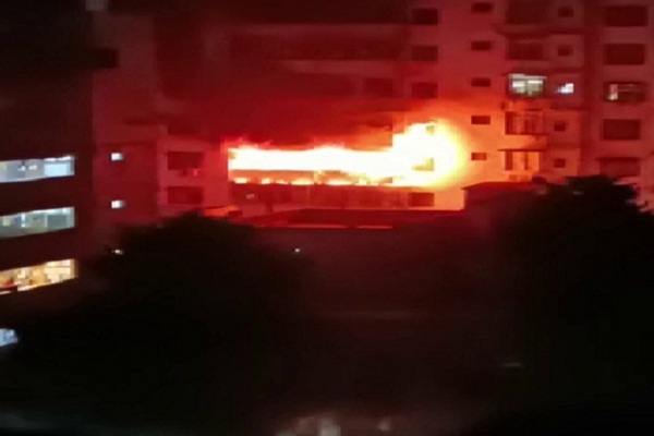 આ ફ્લેટમાં સિલિન્ડર બ્લાસ્ટ થયો અને આગે વિકરાળ સ્વરૂપ ધારણ કરી લીધુ હતું. 10 માળના આશીર્વાદ ટાવરમાં ભીષણ આગથી લોકોમાં ડરનો માહોલ છે. લોકો પોતાના પરિવારજનો માટે ચિંતાતૂર બન્યા છે. આગ ફેલાવાને કારણે રાહત કાર્યમાં પણ મુશ્કેલી પડી રહી છે. આસપાસના પોલીસ સ્ટેશનના જવાનોને પણ દુર્ઘટનાસ્થળે બોલાવવામાં આવ્યા છે. જાણવા મળી રહ્યું છે કે અહીં ઘણા લોકો ફસાયેલા છે. બાળકો, મહિલાઓ અને વૃદ્ધિનો રાડો પાડવાનો અવાજ આવી રહ્યો છે. આગની લપેટો વિકરાળ બની રહી છે. દૂર સુધી આગના ગોળા જોવા મળી રહ્યાં છે.