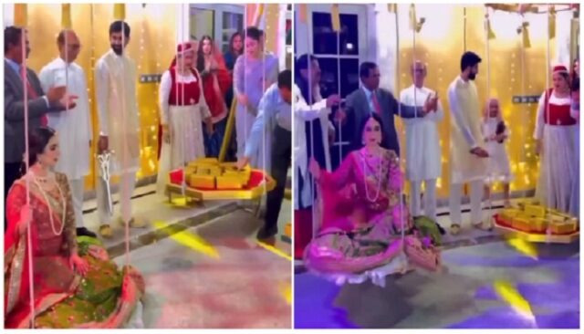 બાદમાં વરરાજો તેના પર પોતાની તલવાર રાખે છે. આ વીડિયોને ઈન્ટરનેટ પર વાયરલ થતાં જોઈને કેટલાય લોકો તેના પર રિએક્શન આપી રહ્યા છે. લોકો આ વીડિયોની ટીકા કરી રહ્યા છે. એક યુઝર્સે કમેન્ટ કરતા લખ્યું કે, આ એકદમ નિંદનીય છે, સંપૂર્ણપણે ક્લાસલેસ છે. આને જોઈને એવું લાગે છે જાણે બજારમાંથી ઝોખીને શાકભાજી લાવ્યા હોય. તો વળી અમુક લોકોએ કહ્યું કે, જો પાકિસ્તાન પાસે આટલું જ સોનું હોય તો, ઘટી રહેલા વિદેશી મુદ્રા ભંડારને ઠીક કરી દેવું જોઈએ. તો વળી અન્ય એકે લખ્યું કે, તલાકને ચાંદીમાં ઝોખશો કે તાંબામાં.
