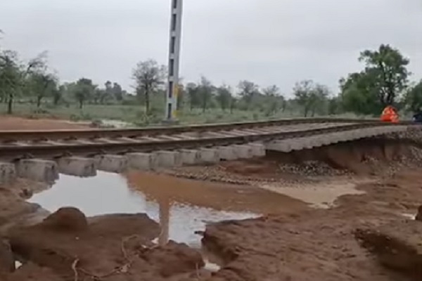 ધાનેરામાં ભારે વરસાદના પગલે રેલવેના પાટા ઉખડી ગયાં