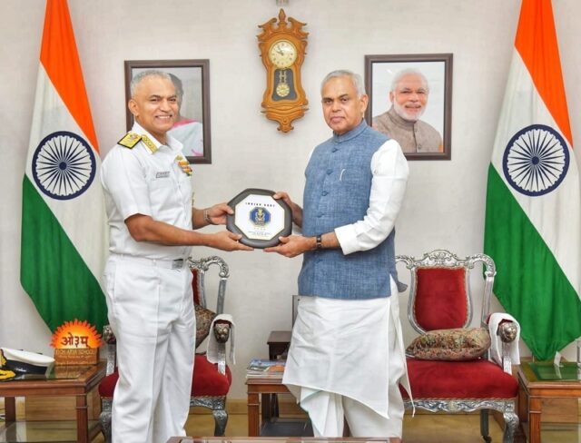 ભારતીય નૌસેનાના વડા – ચીફ ઓફ ધ નેવલ સ્ટાફ એડમિરલ આર. હરિ કુમાર પીવીએસએમ, એવીએસએમ, વીએસએમ, એડીસી એ આજે રાજ્યપાલ શ્રી આચાર્ય દેવવ્રતજીની શુભેચ્છા મુલાકાત લીધી હતી. તેમણે રાજ્યપાલશ્રીને નૌકાદળમાં સમાવિષ્ટ કરાઈ રહેલા મિસાઈલ ડિસ્ટ્રોયર યુદ્ધ જહાજ, કે જેને ‘સુરત’ નામ આપવામાં આવ્યું છે; તેના વિશે જાણકારી આપી હતી. રાજ્યપાલ શ્રી આચાર્ય દેવવ્રતજીએ સૌપ્રથમ વખત નૌસેનાના યુદ્ધ જહાજને ગુજરાતના એવા શહેરનું નામ આપવામાં આવ્યું છે, જ્યાં સદીઓ પહેલાં જહાજ નિર્માણ થતું હતું; તે માટે પ્રસન્નતા વ્યક્ત કરી હતી.