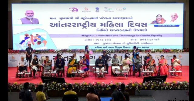 આંતરરાષ્ટ્રીય મહિલા દિવસ અંતર્ગત રાજ્ય સરકારના મહિલા અને બાળ વિકાસ વિભાગ દ્વારા તા. 5 માર્ચના રોજ મુખ્યમંત્રી ભૂપેન્દ્રભાઈ પટેલના અધ્યક્ષસ્થાને ગુજરાત નેશનલ લૉ યુનિવર્સિટી, ગાંધીનગર ખાતે રાજ્ય સ્તરીય મહિલા સંમેલનનું આયોજન કરવામાં આવ્યું હતું.