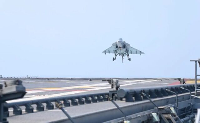 મેડ ઈન ઈન્ડિયા એરક્રાફ્ટ કેરિયર INS વિક્રાંત પર તેજસ ફાયટર એરક્રાફ્ટનું પ્રથમ લેન્ડિંગ