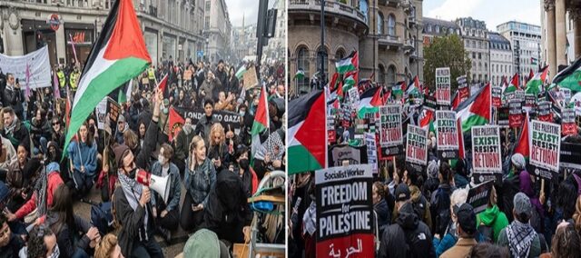 બ્રિટનમાં ઈઝરાયેલ-હમાસ યુદ્ધ વિરામની માગ સાથે મોટી સંખ્યામાં સ્થાનિક લોકો રસ્તા પર ઉતરી આવ્યા હતા. વિરોધ દરમિયાન ચાર પોલીસ અધિકારીઓ ઘાયલ થયા હતા. લંડનની મેટ્રોપોલિટન પોલીસે હિંસા અને કાયદાના ભંગના આરોપસર 29 પ્રદર્શનકારીઓની ધરપકડ કરી છે. મળતી માહિતી અનુસાર, પેલેસ્ટિનિયન એકતા અભિયાનના ભાગરૂપે લગભગ 30 હજાર પ્રદર્શનકારીઓ શનિવારે ટ્રફાલ્ગર સ્ક્વેર પર એક રેલી માટે એકઠા થયા હતા. દેખાવકારોના એક જૂથે ઓક્સફર્ડ સ્ટ્રીટ પર ધરણા પ્રદર્શન સાથે ટ્રાફિકને પણ અવરોધિત કર્યો હતો.. દેખાવકારોએ લંડન અને સ્કોટલેન્ડના કેટલાક રેલ્વે સ્ટેશનો પર ધરણાં કર્યા, માન્ચેસ્ટર સહિત યુકેના અન્ય શહેરોમાં પણ વિરોધ પ્રદર્શનો થયા. મેટ્રોપોલિટન પોલીસે જણાવ્યું હતું કે શનિવારે ગાઝામાં હિંસક સંઘર્ષ વિરુદ્ધ પ્રદર્શન કરવા હજારો લોકો લંડનની શેરીઓમાં ઉતર્યા હતા. ત્યારે વિરોધને કાબૂમાં લેવા માટે વધુ ઝડપી અને સક્રિય કામગીરી કરવા 1,300થી વધુ અધિકારીઓને તૈનાત કરવામાં આવ્યા હતા. આ દરમિયાન ચાર પોલીસ અધિકારીઓ ઘાયલ થયા હતા.. હિંસા અને અરાજકતા માટે ધરપકડ કરાયેલા 29 લોકોમાંથી ગંભીર વંશીય અપરાધો સહિત જાહેર વ્યવસ્થાના ગુનાઓ માટે 9 લોકોની ધરપકડ કરવામાં આવી હતી. એક બેનર પરના શબ્દોને યુકે ટેરરિઝમ એક્ટનો ભંગ માનવામાં આવ્યો હતો. આ અંગે બે આરોપીઓની ધરપકડ કરવામાં આવી હતી. પોલીસ અધિકારી પર હુમલો કરવા બદલ ત્રણ લોકોની ધરપકડ કરવામાં આવી હતી. પોલીસ આદેશોનું ઉલ્લંઘન કરવા બદલ 10 લોકોની ધરપકડ કરવામાં આવી હતી. અન્ય આરોપીઓને વંશીય દ્વેષ ભડકાવવા, શારીરિક નુકસાન પહોંચાડવા, હિંસક અવ્યવસ્થા અને અપમાનજનક શસ્ત્રો રાખવાની શંકાના આધારે ધરપકડ કરવામાં આવી છે.