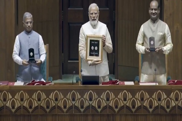 વડાપ્રધાન નરેન્દ્ર મોદીએ આજે ??નવી સંસદ રાષ્ટ્રને સમર્પિત કરી છે. આ ઐતિહાસિક અવસર પર પીએમ મોદીએ ?૭૫નો ખાસ સિક્કો બહાર પાડ્યો. એક ટપાલ ટિકિટ પણ લોન્ચ કરી. આ ખાસ સિક્કા અને ટપાલ ટિકિટનું વિમોચન નવા સંસદ ભવનની લોકસભા ચેમ્બરમાં કરવામાં આવ્યું હતું, જ્યાં આ ઉદ્ઘાટન સમારોહના બીજા તબક્કાનો કાર્યક્રમ રાખવામાં આવ્યો હતો.નાણા મંત્રાલય હેઠળ કામ કરતા આર્થિક બાબતોના મંત્રાલયે ?૭૫નો વિશેષ સિક્કો લોન્ચ કરવા અંગે ગેઝેટ નોટિફિકેશન બહાર પાડ્યું છે. તે મુજબ સિક્કાનું વજન ૩૪.૬૫થી ૩૫.૩૫ ગ્રામની વચ્ચે છે. ઁસ્ મોદીએ આજે ??લોન્ચ કરેલા ?૭૫ના ખાસ સિક્કાની એક તરફ અશોકનું પ્રતીક કોતરેલું છે. તેની બીજી બાજુ દેવનાગરીમાં ‘ભારત’ અને એક બાજુ રોમનમાં ‘ૈંહઙ્ઘૈટ્ઠ’ લખેલું છે.તેના પર અશોકની પ્રતિમાની નીચે ‘?૭૫’ કોતરવામાં આવેલ છે. જ્યારે સિક્કાની બીજી બાજુ સંસદ ભવન સંકુલ કોતરવામાં આવ્યું છે. સાથે જ તસવીરની નીચે ‘૨૦૨૩’ લખવામાં આવ્યું છે. આ સિક્કાની વિશેષતા એ છે કે તેમાં તેના વજનના ૫૦ ટકા જેટલી ચાંદીનો ઉપયોગ કરવામાં આવ્યો છે. જ્યારે તેને ૪૦ ટકા કોપરથી મોલ્ડ કરવામાં આવ્યું છે. આ સિવાય તેમાં માત્ર ૫ ટકા જસત અને ૫ ટકા નિકલનો ઉપયોગ કરવામાં આવ્યો છે.આ સાથે વડાપ્રધાન નરેન્દ્ર મોદીએ આ પ્રસંગે એક સ્મારક ટપાલ ટિકિટ પણ બહાર પાડી હતી. આ સ્ટેમ્પ પર ‘સંસદ સંકુલ’ પ્રસિદ્ધ કરવામાં આવ્યું છે. ‘સંસદ સંકુલ’માં નવા સંસદ ભવનની બાજુમાં જૂનું સંસદ ભવન પણ દેખાય છે.