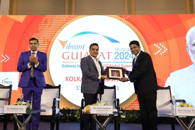 વધુમાં, તેમણે સેમિકન્ડક્ટર ક્ષેત્ર માટે વડાપ્રધાન શ્રી નરેન્દ્ર મોદીના વિઝનને આગળ વધારવા માટે રાજ્યની પ્રતિબદ્ધતા પર પ્રકાશ પાડ્યો હતો. તેમણે જણાવ્યું હતું કે, “ગુજરાત સેમિકન્ડક્ટર પોલિસીનો અમલ કરનાર દેશના પ્રથમ રાજ્ય તરીકે ઊભું છે, જેનો હેતુ સેમિકન્ડક્ટર અને ડિસ્પ્લે ફેબ મેન્યુફેક્ચરિંગ માટે ભારતના પસંદગીના સ્થાન તરીકે સ્થાપિત કરવાનો છે. ઉલ્લેખનીય છે કે, સેમિકન્ડક્ટર સેક્ટરમાં ભારતના અગ્રણી રોકાણકાર માઈક્રોને ગુજરાતમાં સેમિકન્ડક્ટર પ્લાન્ટનું બાંધકામ શરૂ કર્યું છે.” તેમણે એમ કહીને સમાપન કર્યું કે, “હું માનું છું કે ગુજરાતની ઔદ્યોગિક માળખાકીય સુવિધા, સાનુકૂળ નીતિઓ અને ઉદ્યોગ-મૈત્રીપૂર્ણ અભિગમ પશ્ચિમ બંગાળ, ગુજરાત અને આપણા દેશ માટે ફાયદાકારક રહેશે.” ગૃહ અને પોલીસ આવાસ, ઉદ્યોગ, રમતગમત યુવા અને સાંસ્કૃતિક બાબતોના રાજ્યમંત્રી શ્રી હર્ષ સંઘવીએ આગામી વાઈબ્રન્ટ સમિટમાં ભાગ લેવા માટે સૌને આમંત્રણ પાઠવ્યું હતું અને ગુજરાતમાં રોકાણ અને દેશની વિકાસ યાત્રામાં સક્રિય ભાગીદારી માટે પ્રોત્સાહિત કર્યા હતા.