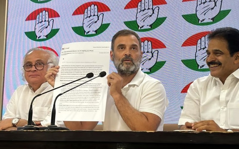 એપલ કંપની દ્વારા કેટલાક વિપક્ષી નેતાઓના આઇફોન પર એલર્ટ મોકલવામાં આવ્યું છે, જેના પછી દેશનું રાજકારણ ગરમાયું છે. વિપક્ષી નેતાઓ સરકાર પર ફોન ટેપિંગ અને જાસૂસીનો આરોપ લગાવી રહ્યા છે. આ મુદ્દે કોંગ્રેસના પૂર્વ અધ્યક્ષ રાહુલ ગાંધીએ પણ પ્રેસ કોન્ફરન્સ કરી છે. સાંસદ રાહુલ ગાંધીએ કહ્યું છે કે અમે ગભરાઈશું નહીં, તમે ઈચ્છો તેટલું ટેપિંગ કરાવી શકો છો. જો તમને મારો ફોન જોઈતો હોય, તો હું તમને તે જાતે આપીશ. પ્રેસ કોન્ફરન્સમાં મોદી સરકાર પર પ્રહાર કરતા રાહુલ ગાંધીએ કહ્યું છે કે દેશની કમાન અત્યારે ત્રણ-ચાર લોકોના હાથમાં છે. તેમણે કહ્યું કે સરકાર હવે વિપક્ષી નેતાઓની જાસૂસી કરી રહી છે. આજે જ એપલ તરફથી એક સૂચના આવી છે કે તમે સરકારના નિશાના પર છો.. રાહુલ ગાંધીએ વધુમાં કહ્યું કે વિપક્ષી નેતાઓનો અવાજ દબાવવા માટે તેમની જાસૂસી કરવામાં આવી રહી છે. તેમણે કહ્યું કે પીએમ મોદીની આત્મા ગૌતમ અદાણીમાં છે, પરંતુ અમે આ પોપટને પકડી લીધો છે. રાહુલે કહ્યું કે દેશમાં અદાણી નંબર વન પર છે, પીએમ મોદી નંબર ટુ અને અમિત શાહ ત્રીજા નંબર પર છે.કોંગ્રેસ સતત મોદી સરકાર પર દેશના સૌથી મોટા ઉદ્યોગપતિ ગૌતમ અદાણીને ફાયદો પહોંચાડવાનો આરોપ લગાવી રહી છે. કયા નેતાઓને Appleની સૂચના મળી? જે વિષે જણાવીએ, શિવસેના સાંસદ પ્રિયંકા ચતુર્વેદી, કોંગ્રેસના નેતા પવન ખેડા, ટીએમસી સાંસદ મહુઆ મોઇત્રા, કોંગ્રેસના નેતા સુપ્રિયા શ્રીનેત, કોંગ્રેસના સાંસદ શશિ થરૂર, અને આમ આદમી પાર્ટીના સાંસદ રાઘવ ચઢ્ઢાને સુચના મળી છે.. આ મામલા પર શિવસેના (ઉદ્ધવ જૂથ)ના સાંસદ પ્રિયંકા ચતુર્વેદીએ કહ્યું કે એપલનો સંદેશ માત્ર વિપક્ષી સાંસદો સુધી કેમ પહોંચ્યો? ભાજપના કોઈ સાંસદ કેમ નથી આવ્યા? અને જો આવી હોય તો તેમને જણાવવું જોઈએ. તેણે કહ્યું કે હું 20 વર્ષથી એપલ ફોનનો ઉપયોગ કરું છું. આ પહેલીવાર છે જ્યારે એપલે આવો મેસેજ મોકલ્યો છે. આ એલર્ટ કોઈ વિપક્ષી નેતા તરફથી નહીં પણ Apple તરફથી આવ્યું છે. આ બહુ ગંભીર બાબત છે. પેગાસસનો મુદ્દો આપણી સમક્ષ છે કે વિપક્ષની સતત માંગણી છતાં સરકારે આજદિન સુધી સંસદમાં આ મુદ્દા પર ચર્ચા કરી નથી. તમને જણાવી દઈએ કે ફોન ટેપિંગને લઈને લાલુ પ્રસાદ યાદવના આરજેડી સાંસદ મનોજ ઝાએ કહ્યું છે કે આ કોઈ આરોપ નથી. સંદેશ પહેલેથી જ પ્રાપ્ત થયો છે. શું થઇ રહ્યું છે? તેઓ (સરકાર) એ જોવા માંગે છે કે કોણ કોની સાથે વાત કરે છે. અમે સરકાર તરફથી કંઈ સાંભળ્યું નથી.