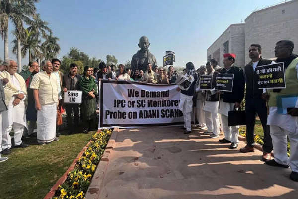 અદાણી ગ્રૂપ પર હિંડનબર્ગની રિપોર્ટને લઈને સોમવારે સંસદના બંને ગૃહોમાં હોબાળો થયો હતો. વિપક્ષ આ મુદ્દે ચર્ચાની માંગ પર અડગ છે. કોંગ્રેસે અદાણી કેસની જેપીસી અથવા સુપ્રીમ કોર્ટની સમિતિ દ્વારા તપાસની માંગણી સાથે દેશભરમાં એલઆઈસી અને એસબીઆઈની કચેરીઓ બહાર વિરોધ દેખાવ કર્યું હતું. દરમિયાન સોમવારે અદાણી જૂથે પ્લેજ્ડ શેર રિલિઝ કરવા માટે 1.1 અબજ ડોલરની લોન પ્રી-પે કરવાની જાહેરાત કરી હતી. સંસદમાં હંગામા પછી લોકસભા અને રાજ્યસભાની કાર્યવાહી મંગળવારે સવારે 11 વાગ્યા સુધી સ્થગિત કરી દેવામાં આવી હતી.અદાણીના શેર વધુ તૂટ્યા અદાણી ગ્રુપના શેરમાં સતત ઘટાડો જોવા મળી રહ્યો છે. હિંડનબર્ગનો રિપોર્ટ 24 જાન્યુઆરીએ બહાર આવ્યો ત્યારથી અદાણી ગ્રુપની ફ્લેગશિપ કંપની અદાણી એન્ટરપ્રાઇઝિસના શેરમાં લગભગ 55%નો ઘટાડો થયો છે. સોમવારે સવારે કંપનીના શેરમાં 5%નો ઘટાડો થયો હતો. જોકે, પાછળથી તેમાં રિકવરી જોવા મળી હતી અને માત્ર 2% ઘટીને રૂ. 1,554 પર બંધ થયો હતો. બીજી તરફ, સ્ટાન્ડર્ડ ચાર્ટર્ડ બેંકે માર્જિન લોન પર કોલેટરલ તરીકે અદાણી ગ્રૂપના બોન્ડ લેવાનું બંધ કર્યું છે. આ પહેલા સિટીગ્રુપ અને ક્રેડિટ સુઈસ બેંકે પણ આવું જ કર્યું હતું.