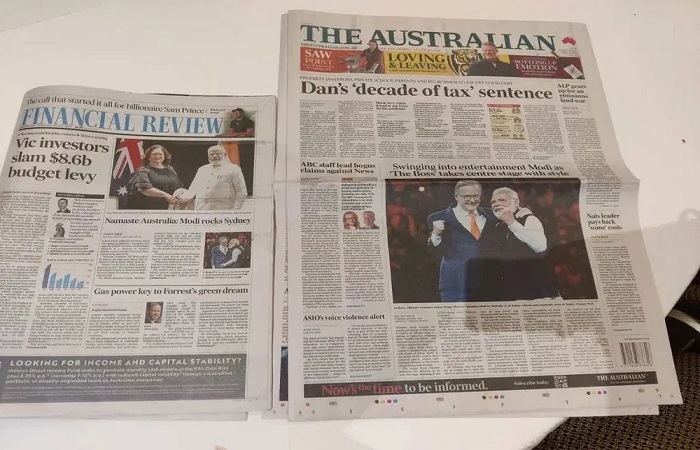 Home દુનિયા સિડનીમાં મેગા શો પછી ઓસ્ટ્રેલિયન અખબારોમાં છવાયા પ્રધાનમંત્રી મોદી, ફ્રન્ટ પેજ હેડલાઇન્સ...